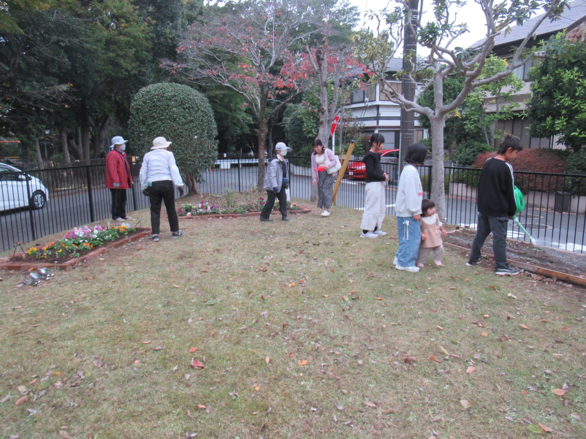 地域の方にご協力いただき、子どもたちと一緒にこ文裏庭の花壇にお花を植えました♪