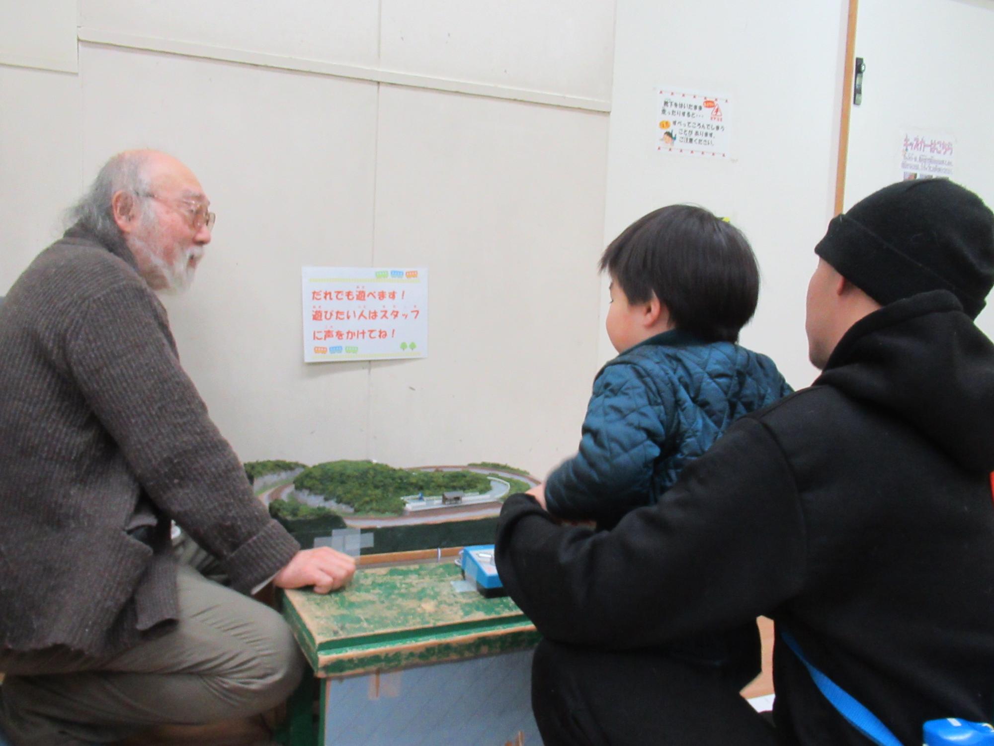 今回の鉄道模型では、子どもでも運転できるジオラマを持ってきていただきました♪